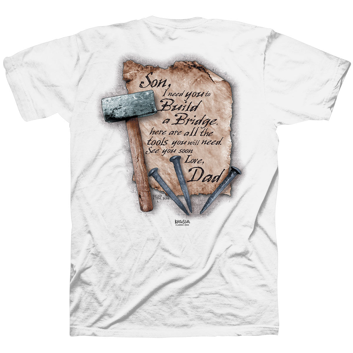 Embrace the gift of salvation in this poignant ?Bridge? Kerusso? T-Shirt in White. God sent His only Son to save mankind from sin, and the cross is a powerful reminder of the sacrifice made on our behalf.