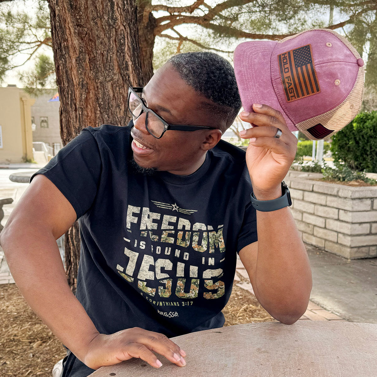 2 Corinthians 3:17 says, ?Now the Lord is the Spirit, and where the Spirit of the Lord is, there is freedom.? This T-shirt makes a powerful statement about your beliefs: you are a follower of Jesus, who paid the ultimate price for our redemption. You know who gave you freedom in the first place, and with the camo design on this Tee, you recognize the valor of the women and men who serve to protect that freedom today.